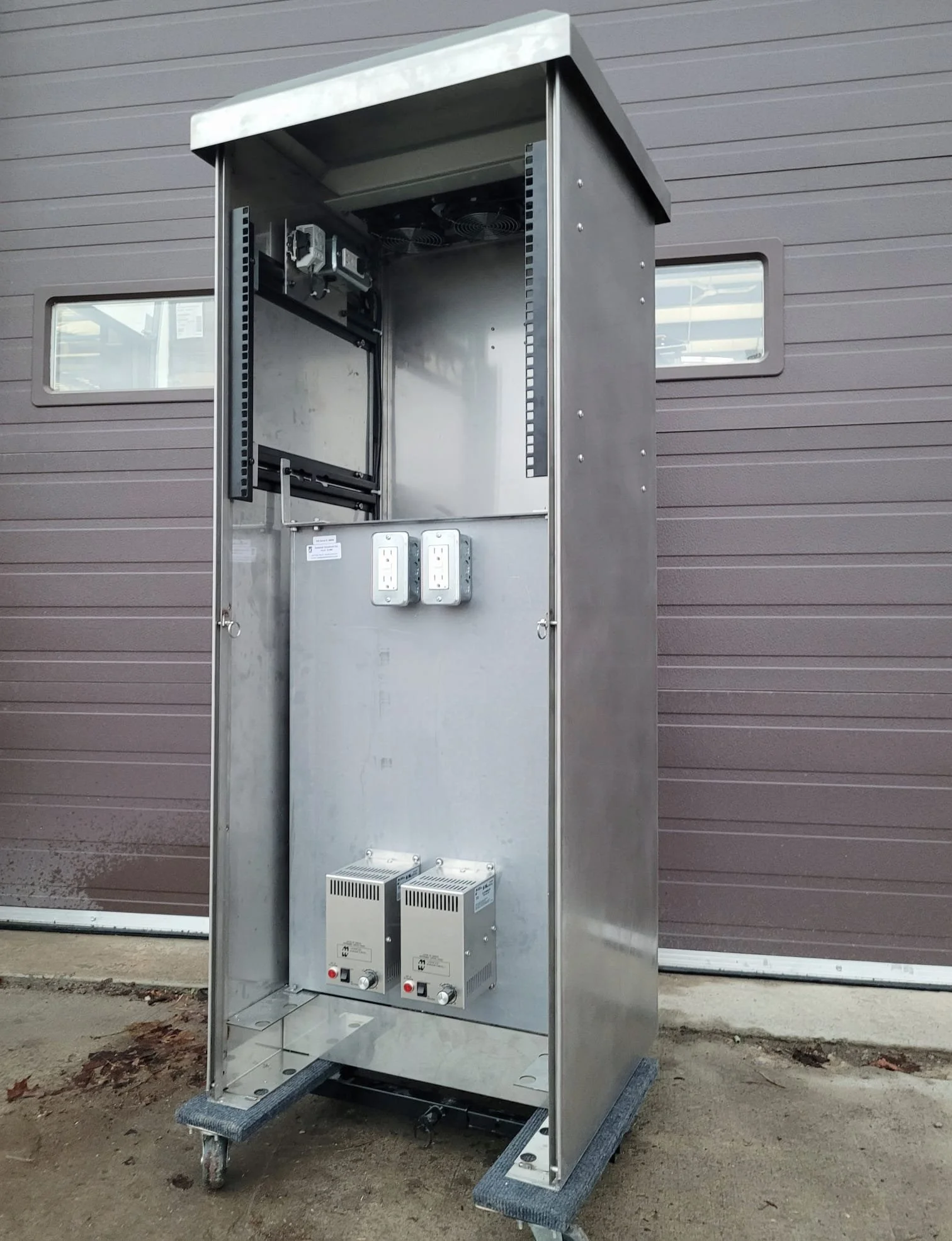 From a self ventilated enclosure with heating and exhausting fans, to a fully sealed unit with a built in AC. We design to meet your equipments operating temp and power needs.