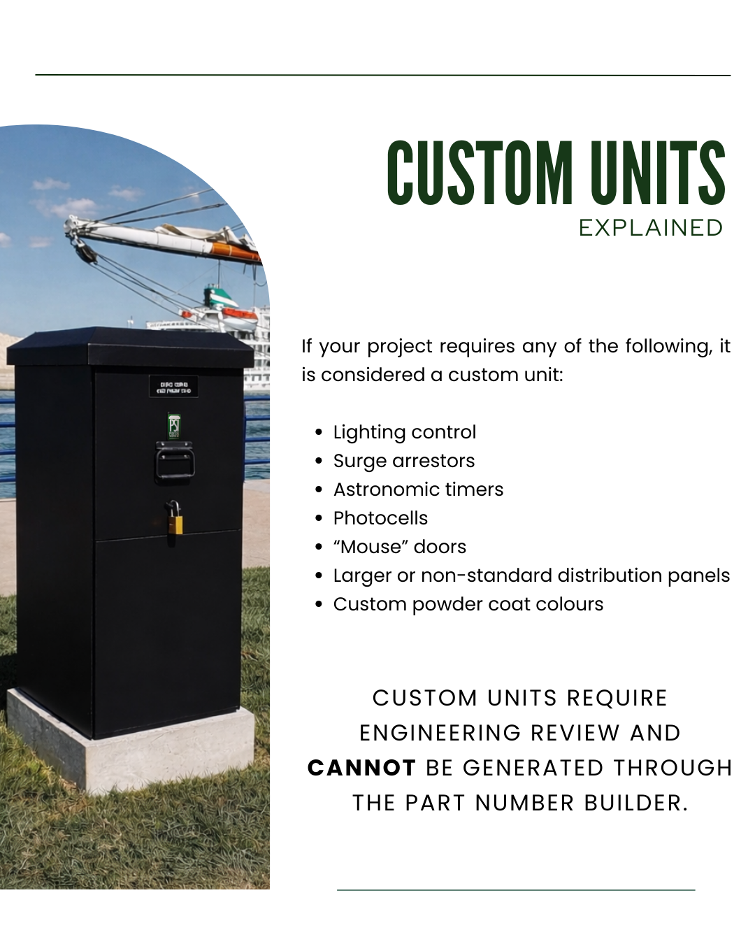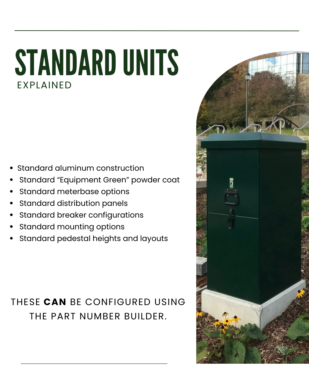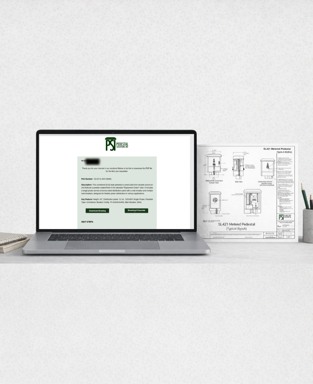 Answer a few guided questions and we’ll generate your complete part number and drawings for a standard pedestal configuration.